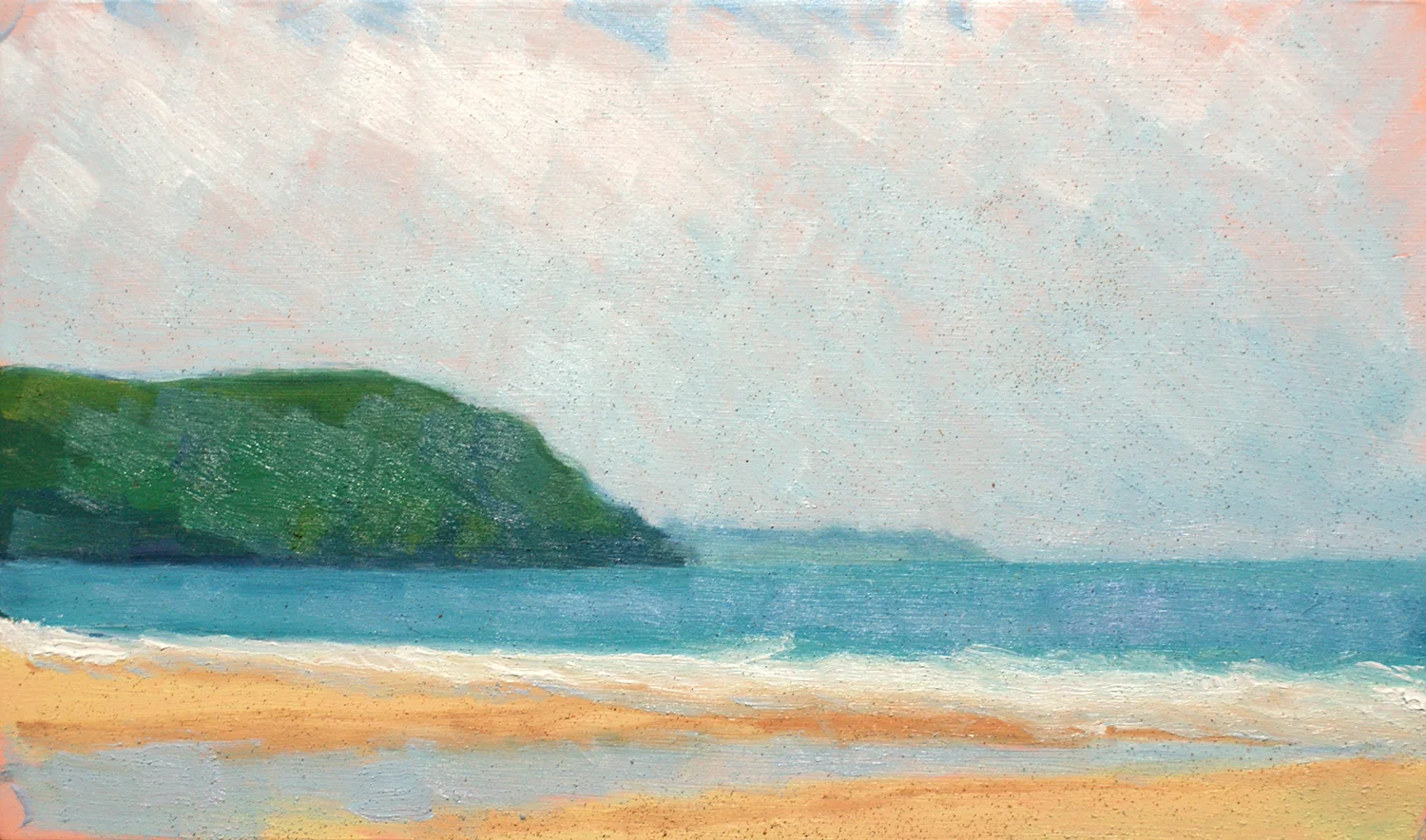 Painting en plain air is always a fun challenge, and especially on a crowded beach full of enquiring passers-by on the Jubilee weekend. Perhaps that’s why I decided to paint the scene with a big open sky and with the beach all to myself.