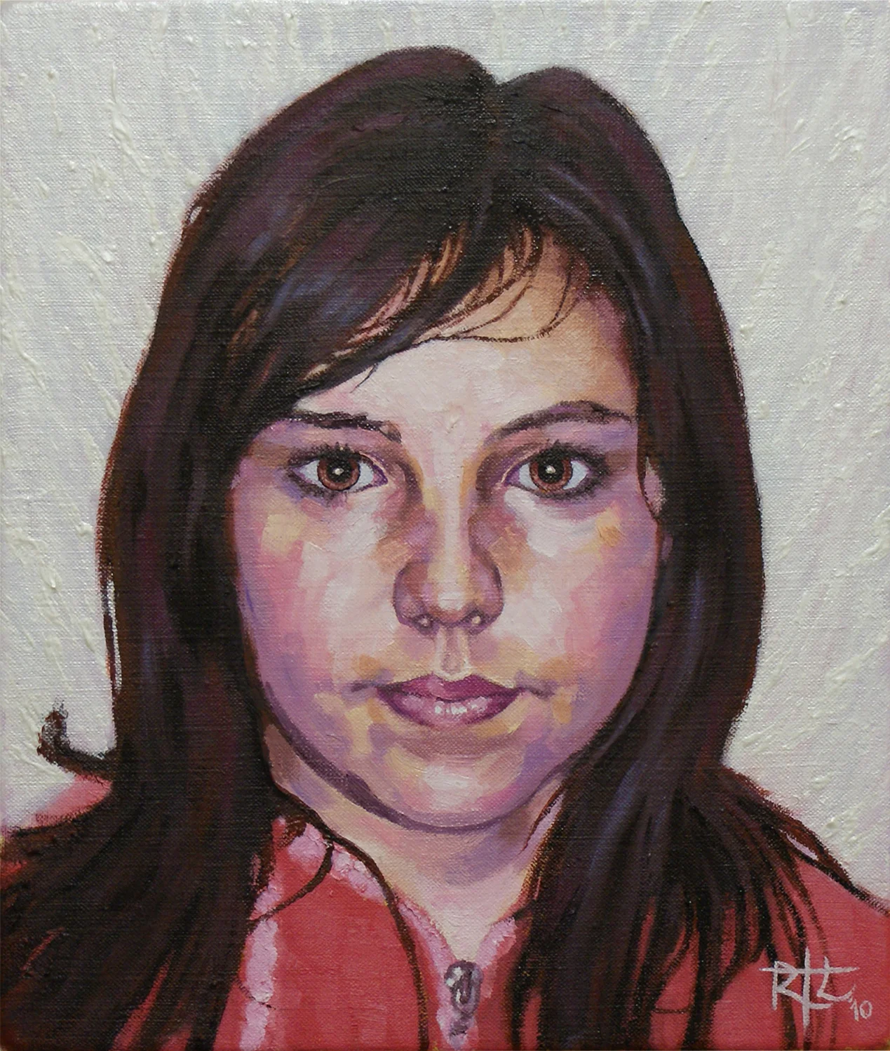 A private commission that had to be completed from a photograph. The painting captures the subtle mix of fragility and confidence of transitioning from child to early womanhood.