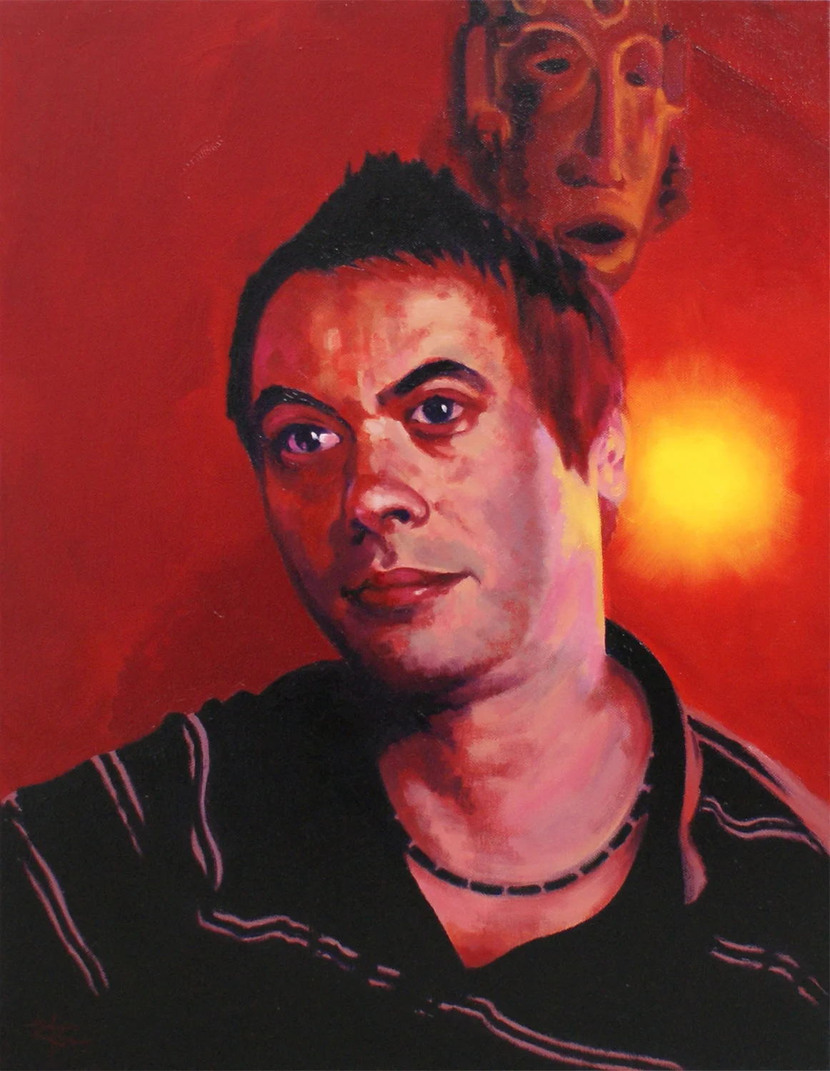 A private commission of writer, journalist and all-round Sci-fi guru, Steve O’Brien. It was fun to play with the hot colours of his boudoir in this one, but too many cigarettes and far too many G&Ts.