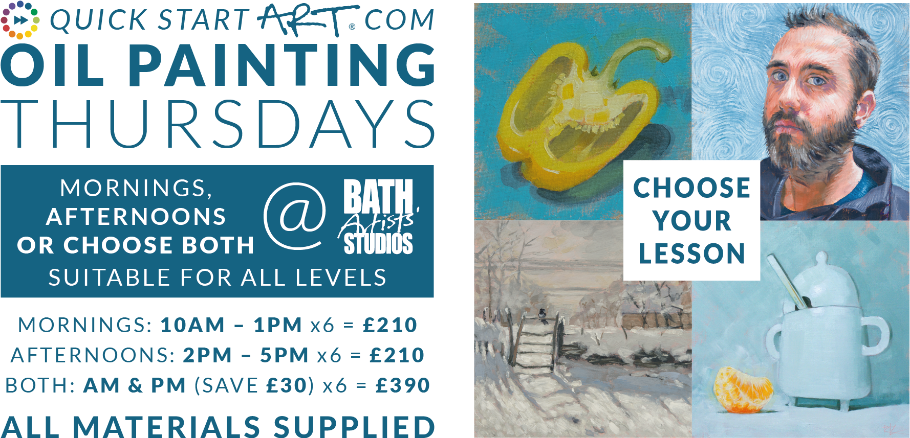QSA Oil Painting Thursdays (AM or PM): 6 x 3hr sessions over 6 weeks = £210