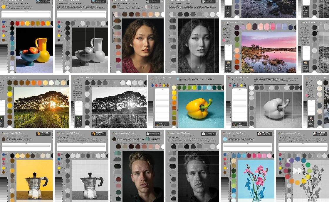 As you can see in the image below, I've been busy designing more QSA Reference Cards so you can choose An Introduction to Oils, Learn to Paint Still-life in Oils, Learn to Paint Landscapes in Oils or Learn to Paint Portraits in Oils for your 6-week term. Each card has a reference image that's scaled to your canvas panel, plus I've pulled out swatches to aid colour identification & mixing. They also have a gridded-up greyscale image on the reverse to help you navigate tonal values. I will switch my demos from the morning & afternoon sessions. Double-up students are free to follow two lessons or focus on one for the entire 6hr session each week. You're free to bring your own reference material along, just get in touch if you have any questions.